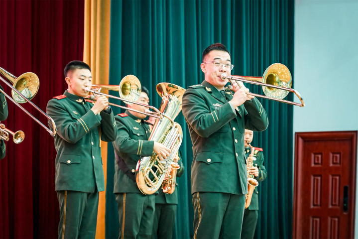 献技在飞腾的男声齐唱中拉开序幕,《逆战》《中邪》的旋律短暂燃烧全场;《狮跃乾坤》阵容如虹,腾踊翻跳间彰显军东说念主的血性;《火红的萨日朗》以刚柔并济的舞姿,抒发新时间创新军东说念主的芳华……器乐合奏、传统技击、热血篮球多种边幅的饰演让慰问献技飞腾迭起、掌声赓续。