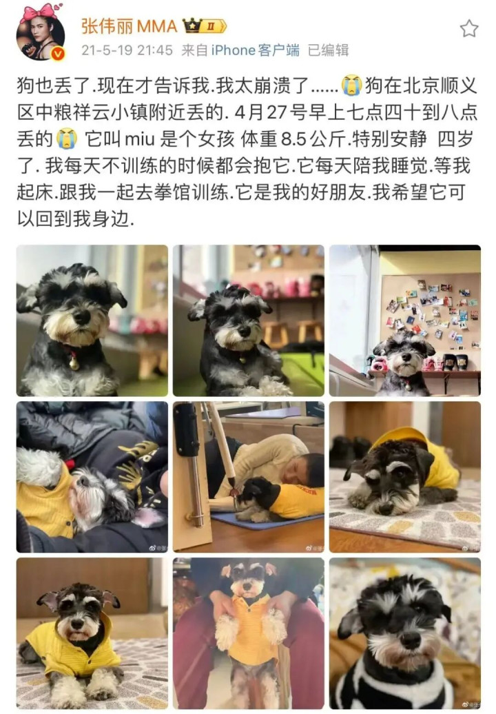 2021年,张伟丽的小狗miu可怜遇车祸死字
