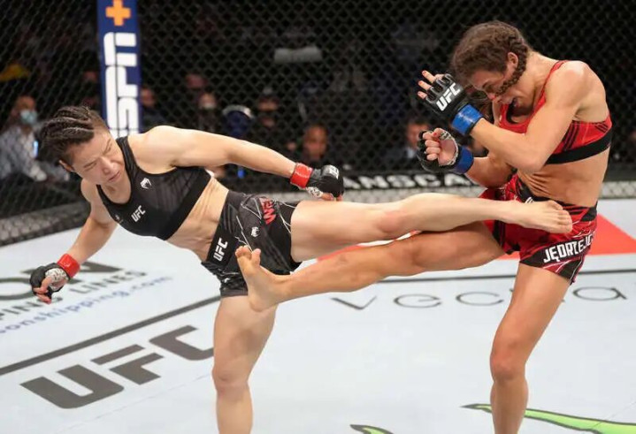 2022年,UFC275比赛,张伟丽在第二回合KO乔安娜(图源 视觉中国)